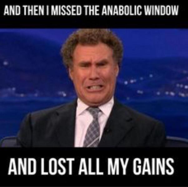 If you have spent some time in the gym I am sure you have seen numerous lifters with their shaker cups and protein powder. Like clockwork they finish their 44th set of bicep curls and then its straight to the water fountain to mix up their chalky powder with warm fountain water and chug it down. The idea is that there is a short window of “Opportunity” to maximize gainz from the just completed workout session. People will even tell you that if you don’t get X grams of some super fast digesting whey protein source within X amount of minutes (usually 30) then you might as well have just stayed home because you wasted that workout. Sound familiar? I heard it when I first started and fell victim to this mentality.